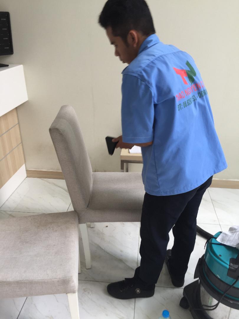 - sau khi giặt xong để đảm bảo cho khô thì nhân viên phải dùng máy thổi để làm khô nhanh hơn và lau lại những viền chân ghế , tay cầm của ghế , khủ mùi thơm mà không gây hại đến con người .